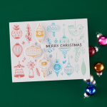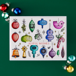 Fill a full A2 card panel with playful vintage style ornaments an a single press of the Christmas Whimsy plate. Press in black for a perfect pattern to color in with markers or watercolor, or try out a fun inking technique with this plate. Perfectly cut out all the elements with the coordinating die to multiply the creative options! Use a few ornaments to make a card, or create a recessed shaker. So many choices! The plate includes two sentiments to finish off your project: "Joyful Wishes" and "Merry Christmas."