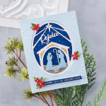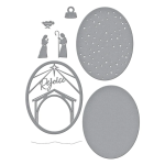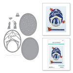 Rejoice Nativity Etched Dies is part of the Christmas Traditions Collection and can be used in several different ways. Nest all eight thin metal dies to create a lovely, layered nativity scene in an ornament motif. It can create a window card or a shaker card. Use the scene itself for a wonderful focal accent.